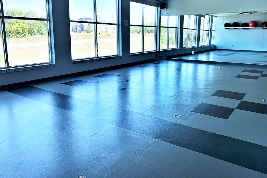 Natural light: Our gym is bright and open, with wrap-around windows on the 2nd Floor for lots of natural light, but with privacy, too. It’s the opposite of a cave!